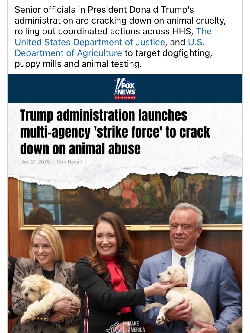 原文新聞: https://www.foxnews.com/media/trump-administration-launches-multi-agency-strike-force-crack-down-animal-abuse?brid=iBxfjWKzCWQmRXV4LspVRQ